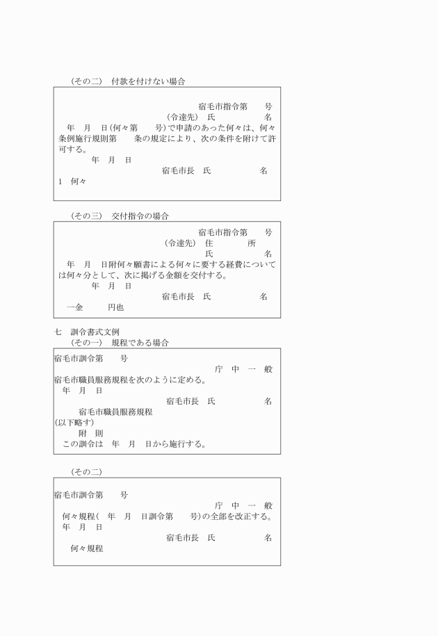 第5条 前条に掲げる文書の書式文例は、末尾附録のとおりとする。