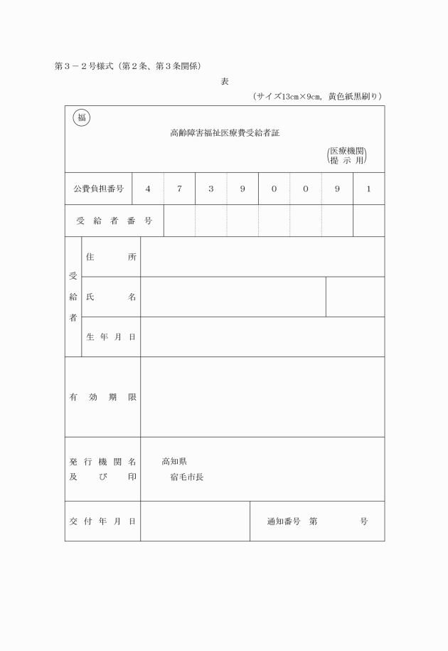 ○宿毛市福祉医療費の助成に関する条例施行規則
