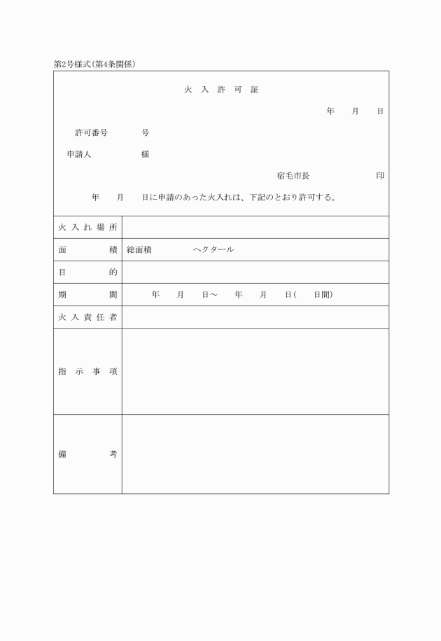 2 火入責任者は、火入れに際し、火入許可証を携帯しなければならない。
