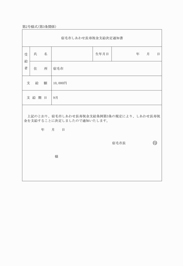 ○宿毛市しあわせ長寿祝金支給条例施行規則