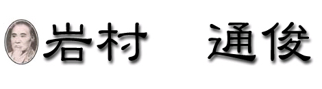 岩村通俊は幼名を猪三郎といい、後に弥左衛門、または左内と改め、貫堂と号し、また俳号を素水と称した。宿毛邑主安東家の家臣で、父有助英俊(礫水)母小野氏の長男として、天保11年6月10日宿毛に生れた。兄弟は3人で、兄が通俊、中は林有造、弟が高俊で、兄弟がみな偉大な人物として世に知られている。幼い時、在郷の儒者酒井南嶺に就いて学にはげんだ。少年の頃高知の剣客岡田以蔵が宿毛に来て、土地の青年に剣道の指南をしたが、通俊もまたこれについて学んだ。