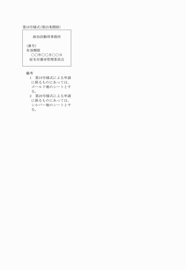 2 法第201条の11(政治活動の態様)第8項の規定によって委員会が行う表示については、第27号様式によって作製した証紙又は表示板を用いるものとする。