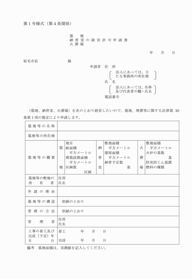 ○宿毛市墓地、埋葬等に関する法律施行規則