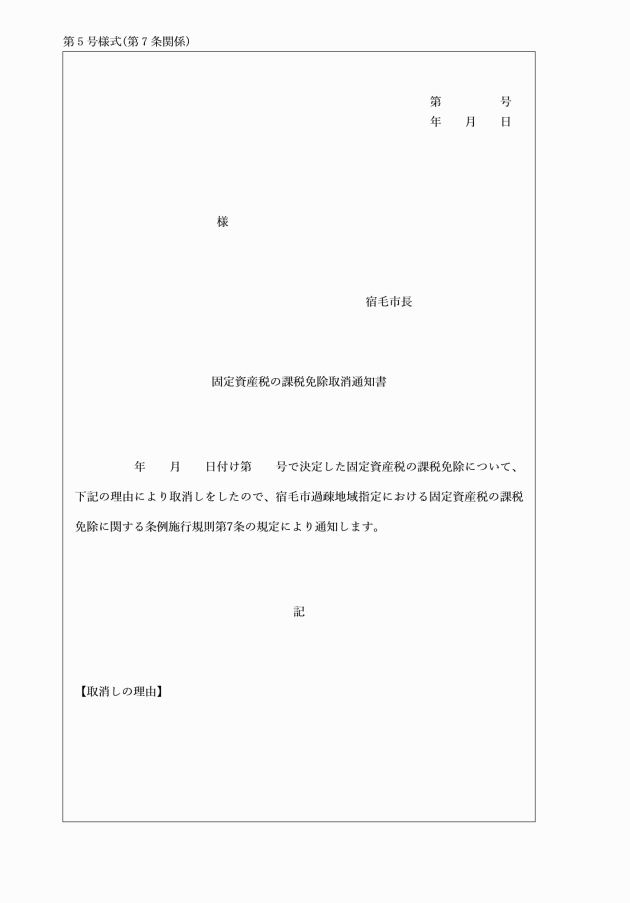 ○宿毛市過疎地域指定における固定資産税の課税免除に関する条例施行規則