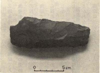 スクレイパーや石斧石鏃が多く出土しているがこれらは大体繩文中期から後期のものであろう。スクレイパーにはつまみ部を有するものと、無いものがあり、皮はぎ、肉きり等ナイフの用にしたものであろう。石斧は方形に近いもの・円形のもの長方形のもの・ばち形のもの等がある。石鏃・スクレイパーについては17頁に実測図をのせている。